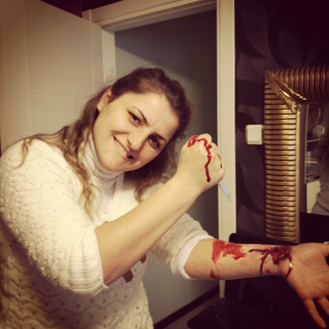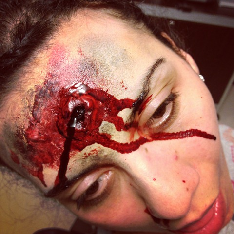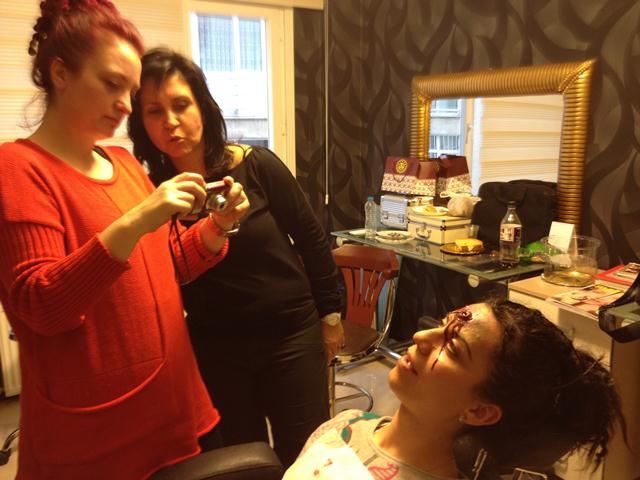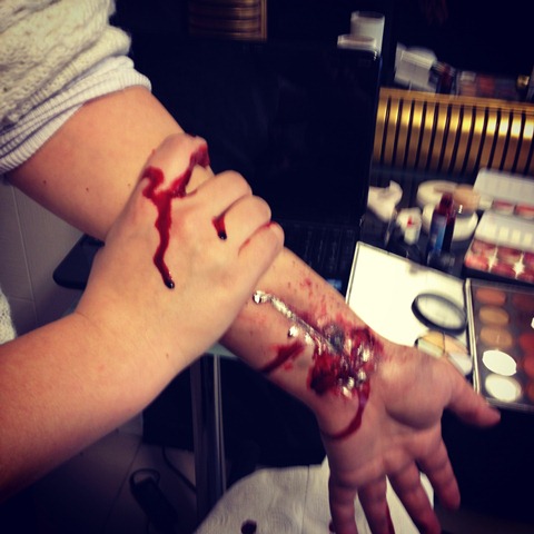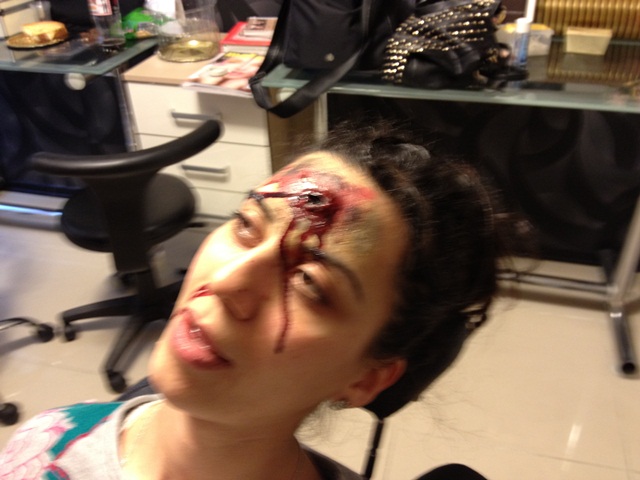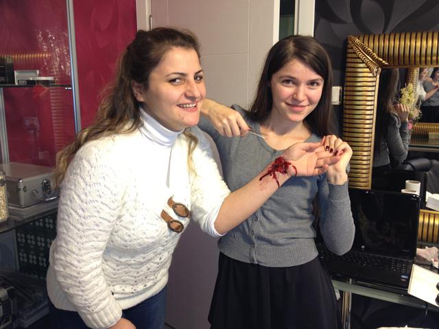 Makyaj Kursumuzdaki son haftaki konumuz Efekt ve Plastik Makyajdı. Öncelikli olarak Plastik makyaj nedir, plastik makyaj nerelerde yapılır ve plastik makyaj malzemeleri nelerdir gibi konulardan bahsettik. Daha sonra uygulamalı olarak Yara makyajı çalışmaları yaptık. Kesik makyajı, şiddet yani dayak makyajı gibi çalışmalarımızda oldu.